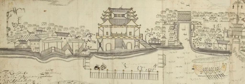 Ngũ Long Lâu cao khoảng 60m, xây bằng đá phiến vững chãi, có ba tầng chính và chóp nhọn phía trên. Tầng dưới cùng là nơi đãi yến, phong áo mũ cho tân khoa; tầng điện Quang Minh là nơi Chúa và Thế tử duyệt thủy quân, làm lễ cầu quốc thái dân an. Đến mùa nước sông Nhị Hà (sông Hồng) dâng lên khoảng tháng sáu, nước ngập đến chân lầu, mặt lầu Ngũ Long tiếp giáp với mặt nước. Vua Trịnh cho đặt xưởng đóng tàu, huấn luyện thủy binh tại đây.